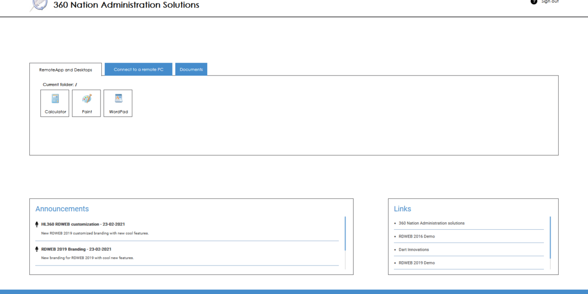 360 Nation Administration Solutions – Remote Desktop Web Access 2019