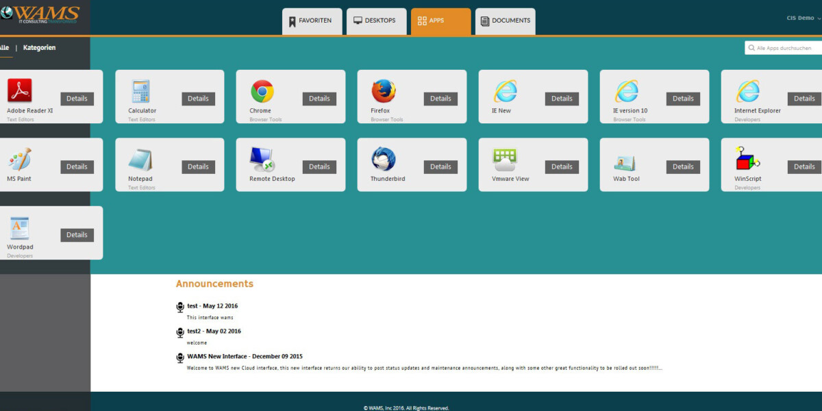 | Interface | Citrix StoreFront 3.5 and NetScaler 11.0 |