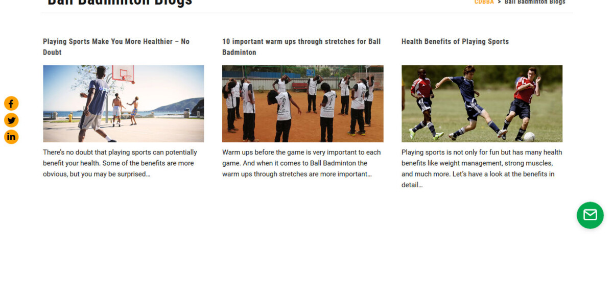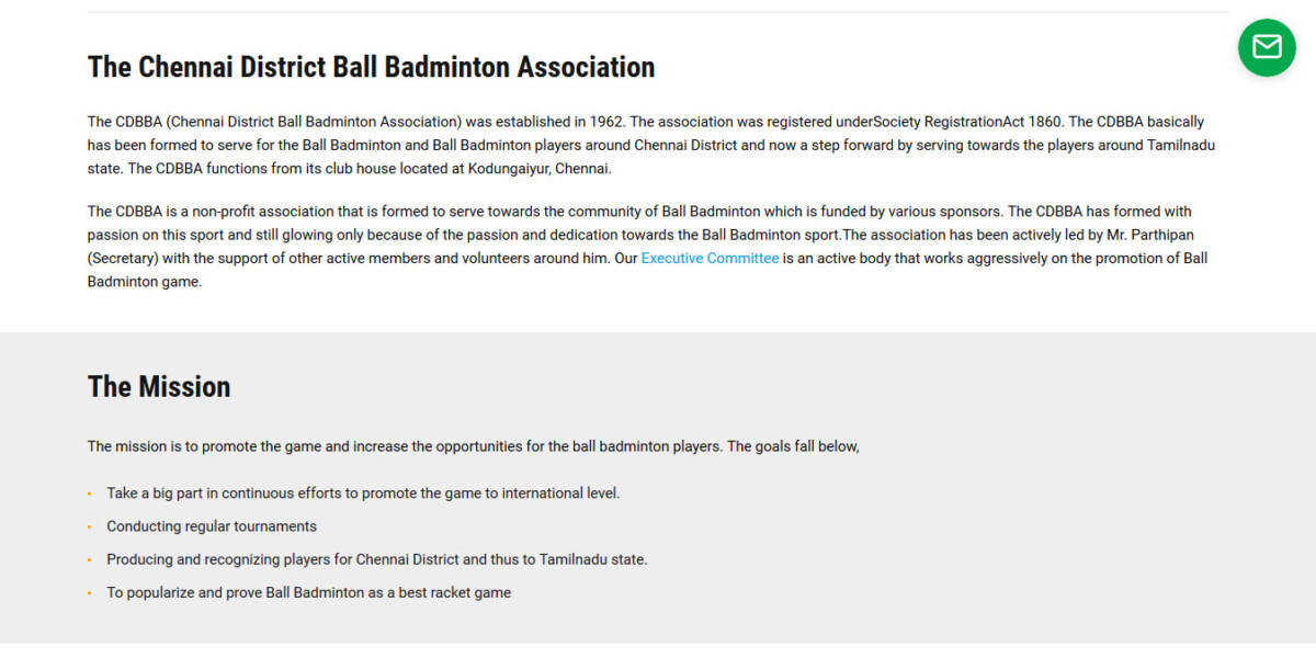 | Details | A fully responsive and modern website for the Sport Ball Badminton. It was developed using WordPress using Splash – Sport Club Theme. DART sponsored this website to CDBBA also committing all on-going maintenance including hosting expenses. The website keeps getting updated with Tournament news and results. |