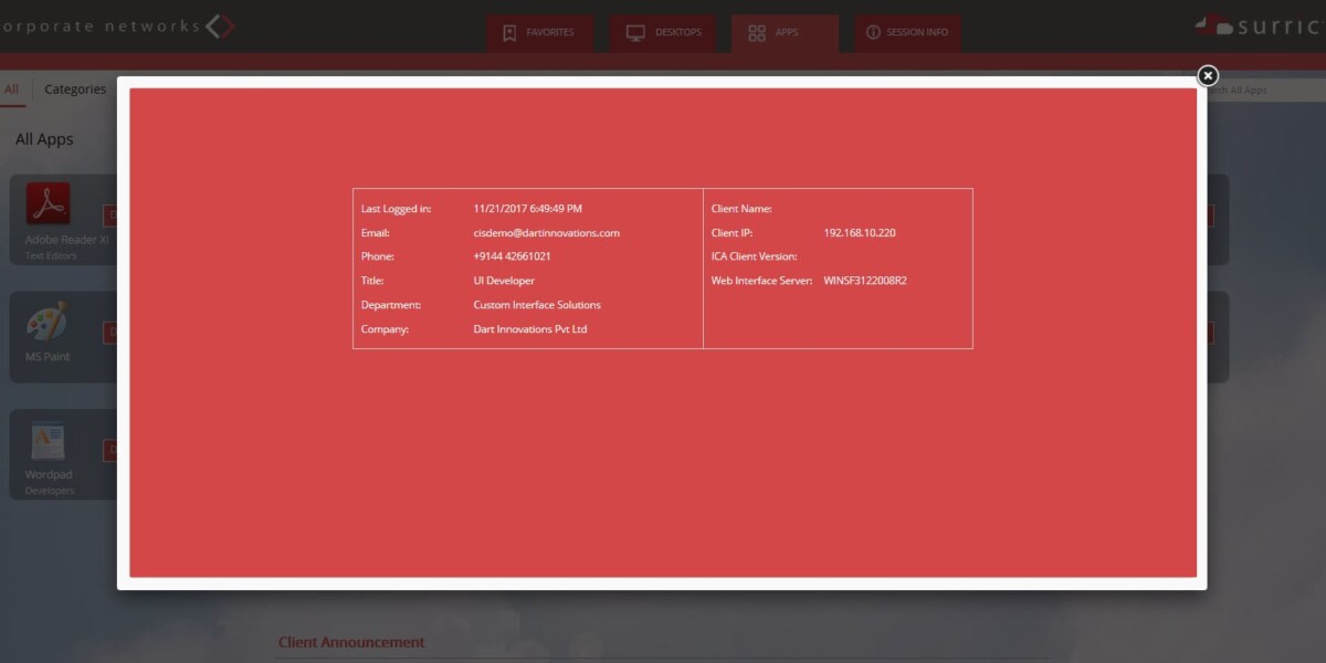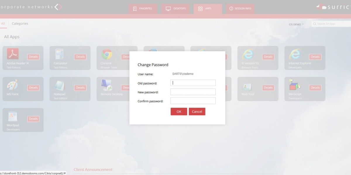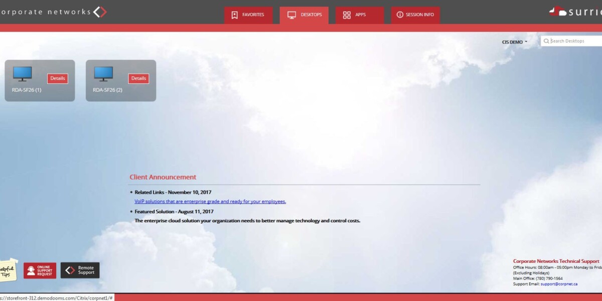 | Interface | Citrix StoreFront 3.12 and Netscaler 12.0 |