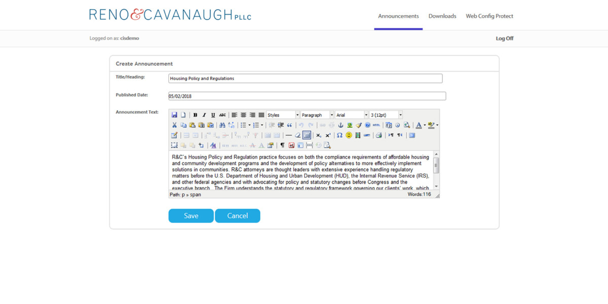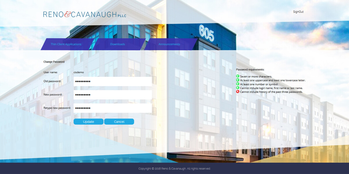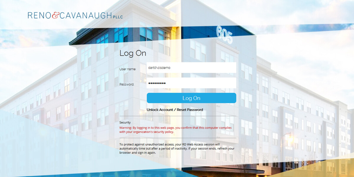 | Client Name | Reno & Cavanaugh – Remote Desktop Web Access 2016 |