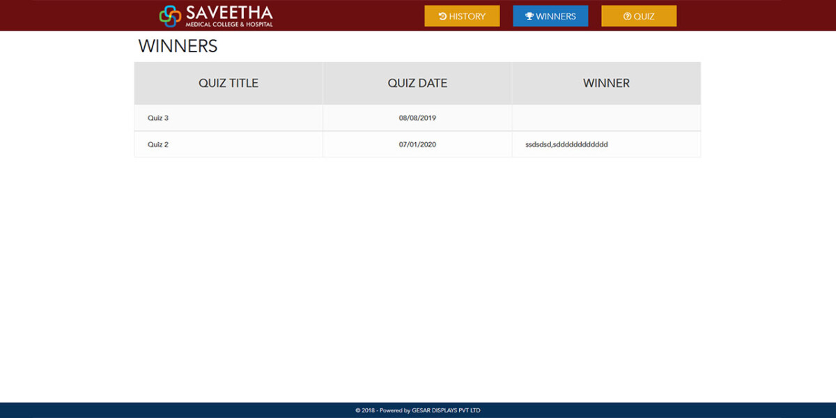 | Details | The Quiz App loads on the startup of Kiosk with set of questions. The users log in with their name and answer set of questions. Upon submission the data will be sent to server for Quiz administrator’s review. The quiz keeps updated on regular basis from the admin module. |